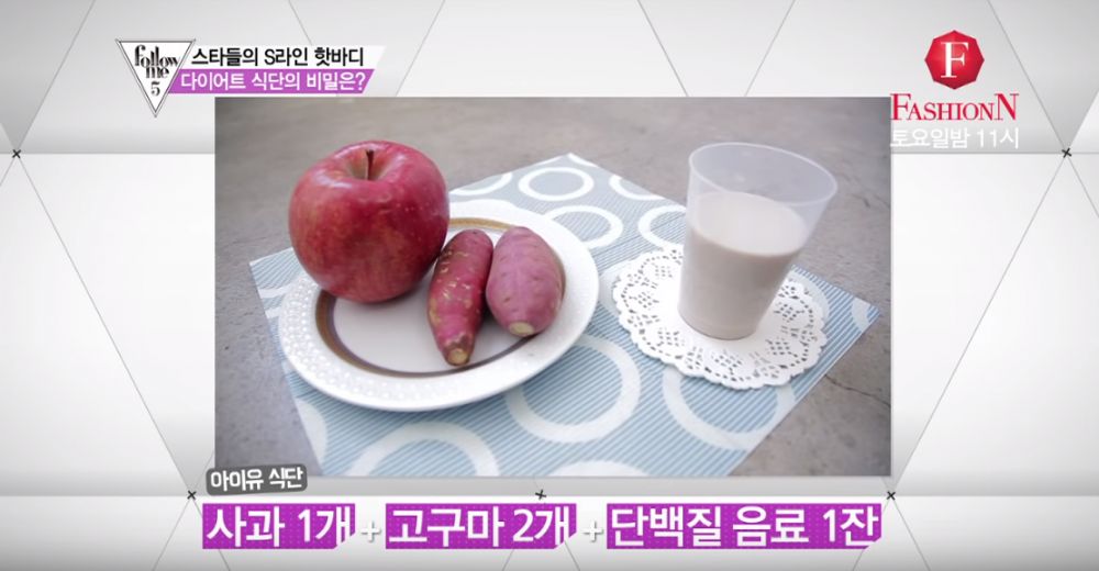 以上是IU一日的餐单,只有300卡路里,要持续吃7日,建议不要乱试!