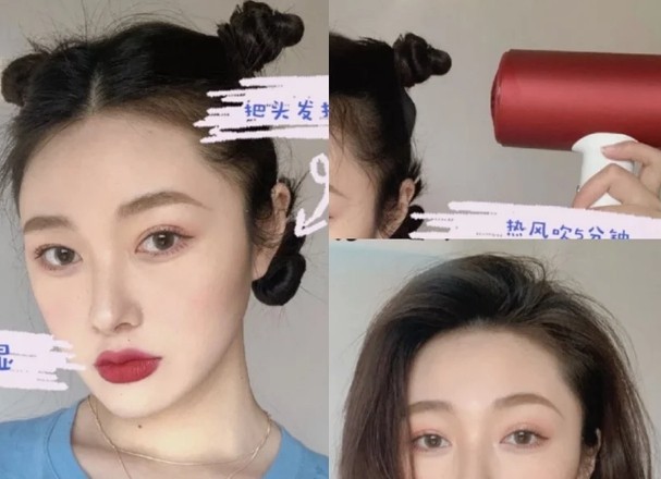 除了上面的两种吹整技巧,发型师也公开了超适合懒人的丸子头分区吹整方法~将头发吹至半干,用梳子梳开、确定没有打结后,将头发上下左右分成四区,每一区各绑一颗丸子头,接著用吹风机热风吹5分钟,再替换成冷风,一样吹整5分钟,放下头发时就会是超级有澎感的韩系发根烫!而且发尾还会带有微微的自然卷度~如果是干发吹整,再吹头前先沾水将头发微微打湿,定型效果会更好~