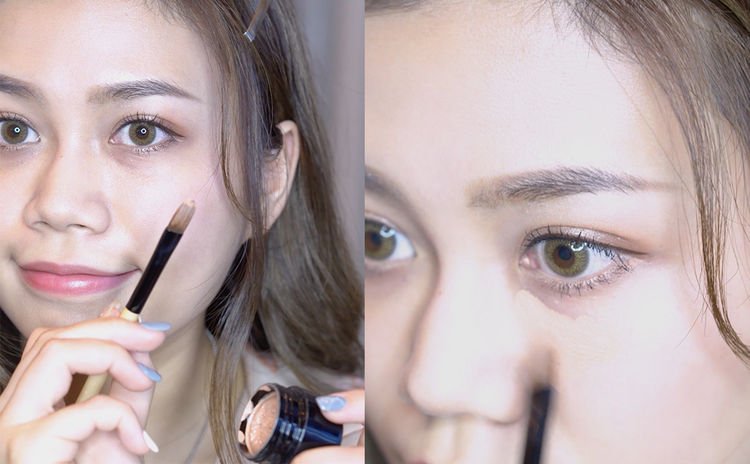 笔者建议先用遮瑕扫推开遮瑕膏(想快一点的话可以用size更大的粉底扫),之后再用手指轻点几下。比起直接用手指上遮瑕膏,这样上的遮瑕力更高。要注意的是,落笔位不要太贴近睫毛根部,应该放在黑眼圈最深色位置,再慢慢向上推开,效果更自然,也不容易卡粉。