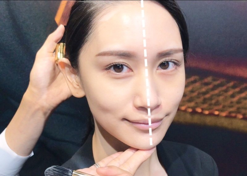 YSL粉底棒试色。