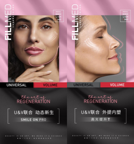而优质的临床交付,也离不开可靠产品的支撑。FILLMED菲欧曼自1978年在法国成立以来,距今已有近47年的历史,拥有丰富的医美产品线布局。2020年在中国市场上市的ART FILLER UNIVERSAL艺术填充·优塑,得益于品牌创新的TRI-HYAL®交联科技的缓释技术,其在口周年轻化治疗中有着不可替代的产品优势;2024年上市的另一款当时市面弹性模量最高的透明质酸钠凝胶产品 ART FILLER VOLUME,弥补了当时面部骨性支撑和高光点打造需求方面的空缺,以适应不同求美者部位的改善需求。