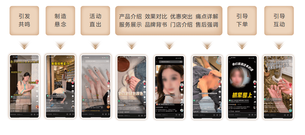 除了直播之外,短视频是丽人商家做好本地经营的基础。短视频直观展示丽人服务效果,提升用户信任度和转化率,显著带动搜索增长,还能与直播协同提高经营效率。在抖音,商家通过打造账号矩阵,提升内容丰富度,以差异化内容影响不同用户的下单决策。在具体创作环节,商家需要重点关注3秒完播率、点击率、转化率、互动率等指标,巧用悬念、反差、设置优惠福利等技巧,提升内容质量。