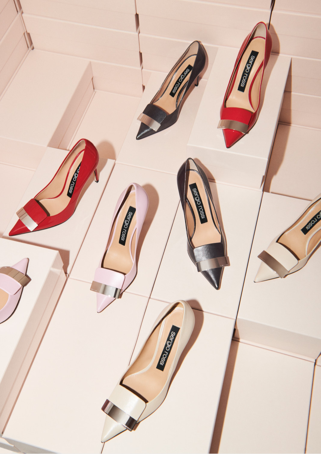 品牌除了在台北微风南山设有柜点之外,现在终于传出好消息,确定入驻远百信义A13一楼成立专卖店,可追溯至1969年的Sergio Rossi几何logo,在专卖店成为雕塑感店面设计元素,甚至打造全新3D立体Sergio Rossi字样怀念已故设计师,搭配裸色墙面与优雅的大理石地板相当奢华。