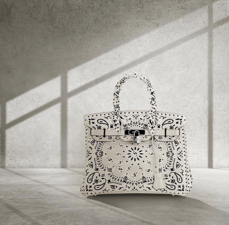 这组照片中,凯莉珍娜背后的爱马仕“柏金包”,是由比利时品牌“JAY AHR”设计师Jonathan Riss改造而成,他运用精湛的刺绣工艺技术,在经典铂金包制作出Bandana丝巾图腾,全球就只有这么一个!为品牌“The Vintage Iconic Hermes Bag X Jay Ahr Collection”中“Bandana ”系列的白色款式,在早先Jonathan Riss也曾经制作过绿色与灰紫色款,一颗Bandana系列刺绣柏金包就要价38,500美元,约台币115万,买得起这款包还不算有钱吗?