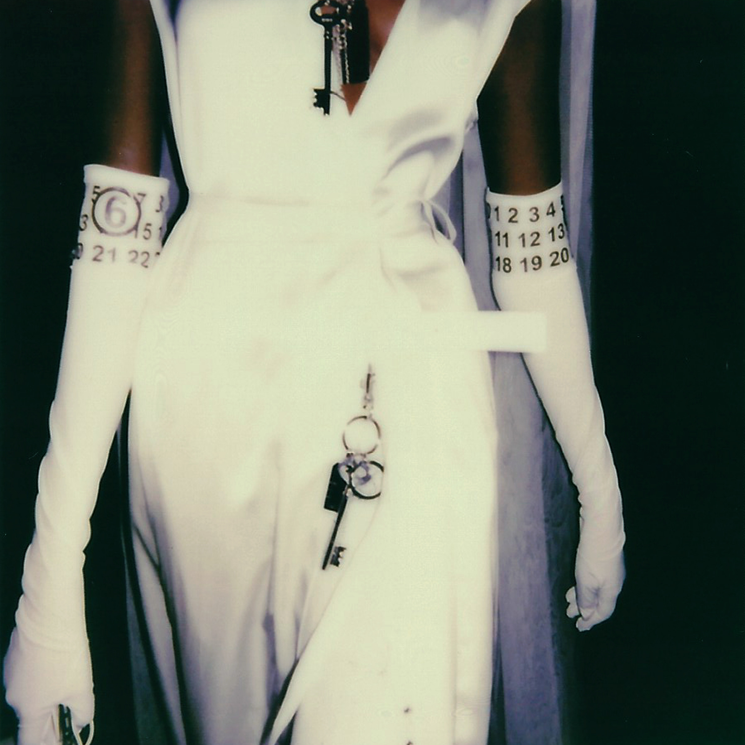 MM6在本季灵感取自1969年越战期间,约翰蓝侬和小野洋子的Bed-In for Peace“床上和平”运动,当时还是新婚夫妇的两人,仅仅穿著白色睡袍,躺在床上7天接受媒体采访,呼吁外界能够停止战争。如此创新思想也延续到品牌单品中,将Logo和数字装置将口号“They Are Two Of A Kind他们是一类人”、“BETTERHALFISM”结合,点缀著圆形裁剪的礼裙和标志性的裸色连体衣,洋溢神秘与现代感。