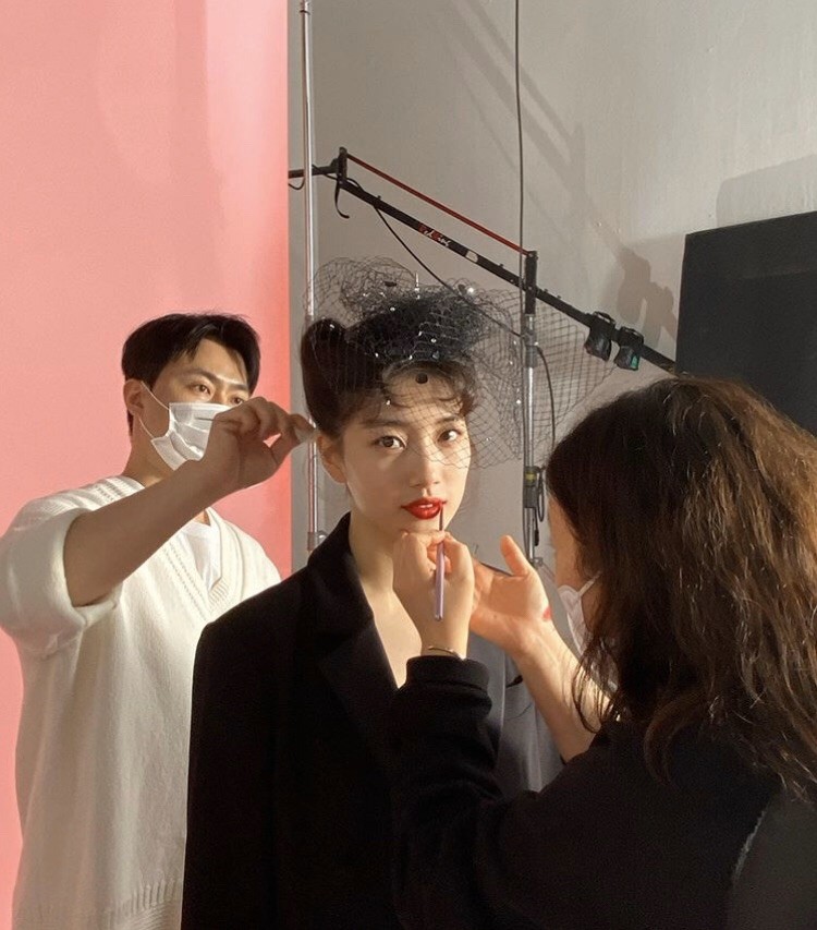 只要戴上这种网纱头饰,就能给人一种复古优雅的法式风情之感,曾在南韩掀起一阵流行风潮,尤其是IU在《德鲁纳酒店》的百变造型中,便出现了好几次,此次秀智换上了鲜少尝试的风格,并且难得展现性感韵味,比起IU似乎更有女人味一些。虽在镜头前摆出气势、美艳的姿态,但私下活泼个性的秀智,在拍摄现场听到法国歌谣《Comment te dire adieu》便随之起舞,逗得现场笑声不断,女神可爱的模样又更加吸引人了。