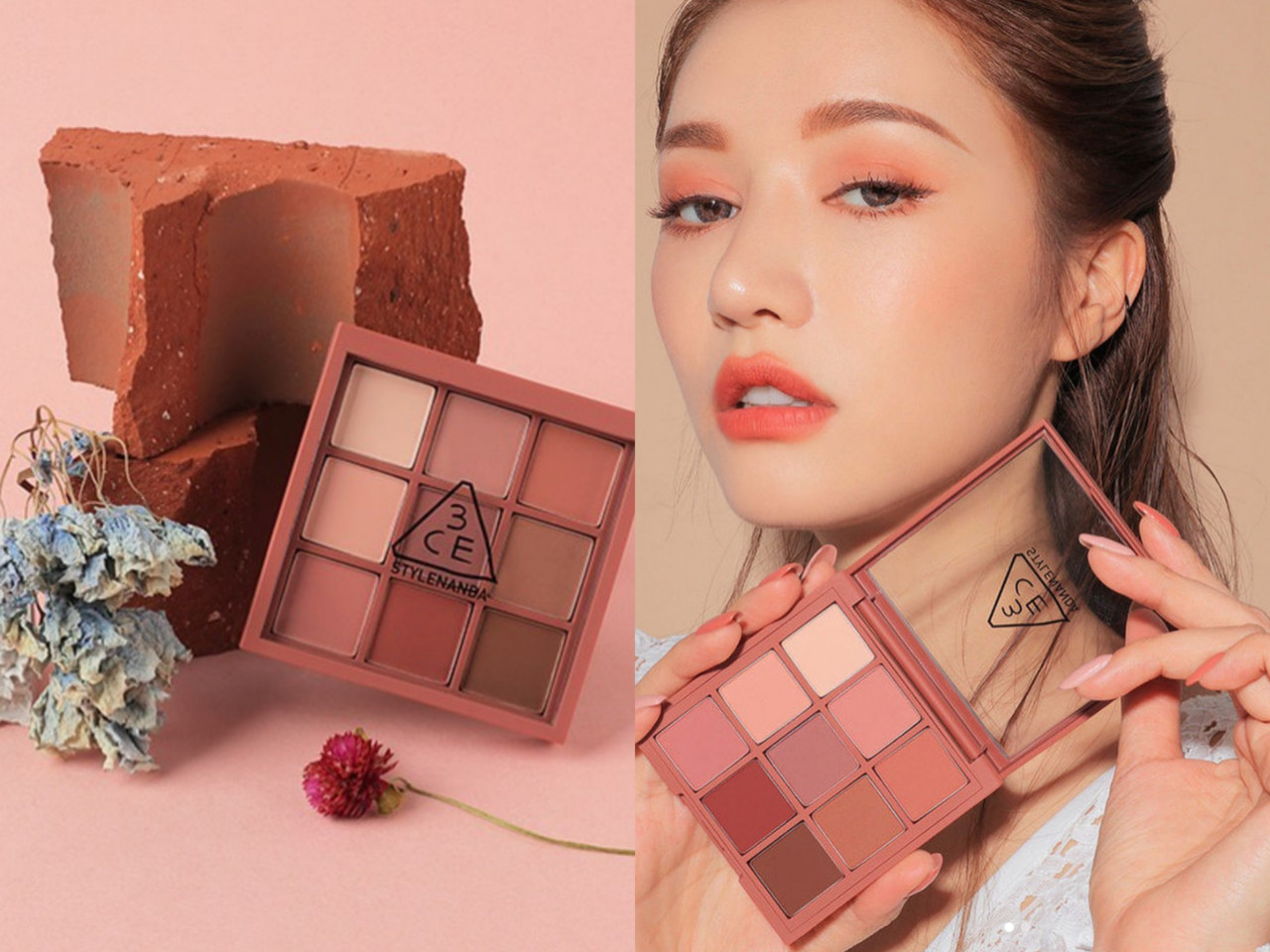 南韩潮流品牌旗下的彩妆系列3CE也早在之前推出过类似的单品,其中#DRY BOUQUET这盘就是以干燥的花朵作为发想,整体算是比较偏粉色调的眼盘为主,但也有一两格薰衣草牛奶的色泽,整体而言也是非常好画、实用的单品。