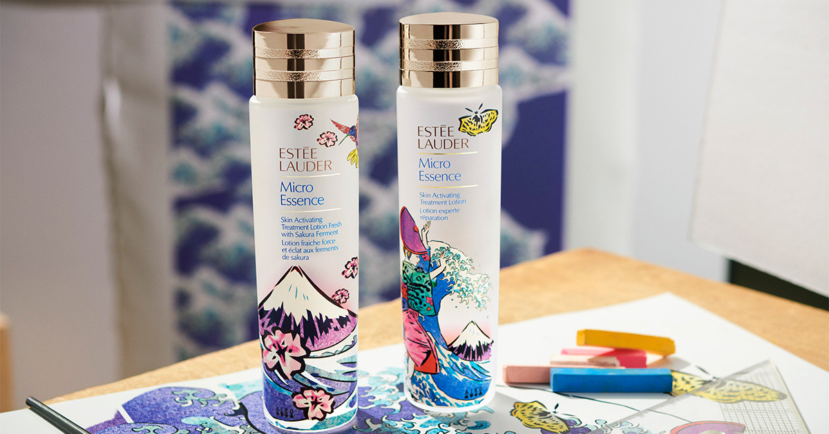 2020雅诗兰黛携手涂鸦界女皇Lady AIKO,首度推出全台限量1500瓶浮世绘限量版“微分子肌底原生露”和“微分子肌底原生露 樱花轻盈版”,瓶身以《富岳三十六景》作品之一的“神奈川冲浪里”为原型,将巨浪中翻覆的小船改为面带自信无畏惧跳舞的日本女人,而当时涛天巨浪象征为“严峻威胁”,一旁在浪涛中的富士山对日本而言为神圣与美的象征,展现出面对威胁仍然无所畏惧的女性精神和致敬日本象征屹立不摇精神的富士山。