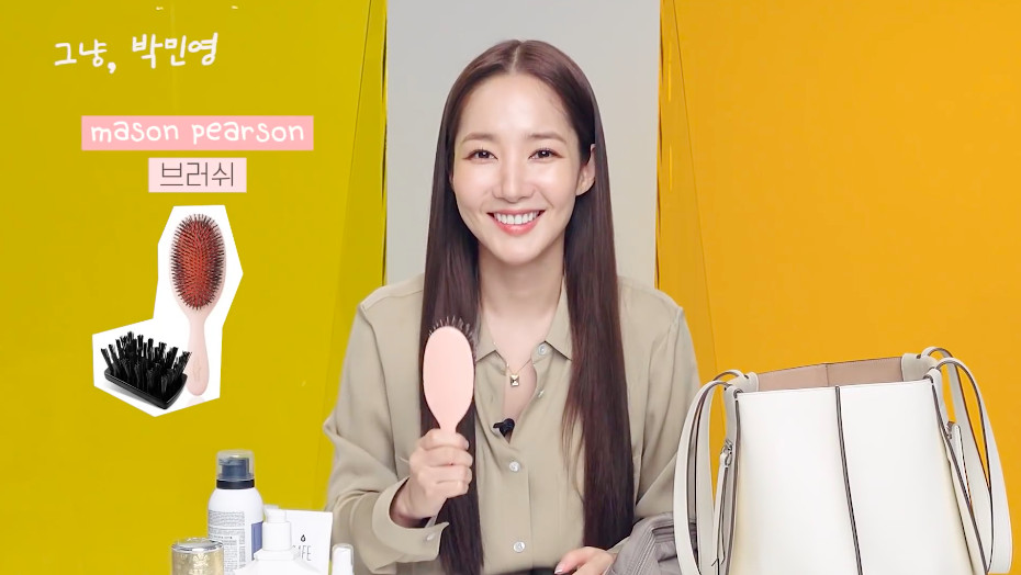 接著朴敏英也提到,自己的头发非常长,而且都是真的,所以平常非常注重头发护理,还会随身携带URBAN TRIBE的保湿头发慕斯,里头的荷荷芭油、摩洛哥坚果油⋯⋯等油份能让头发保湿有光泽,搭配上MASON PEARSON的“魔法梳子”,这就是朴敏英滑顺秀发的秘密。