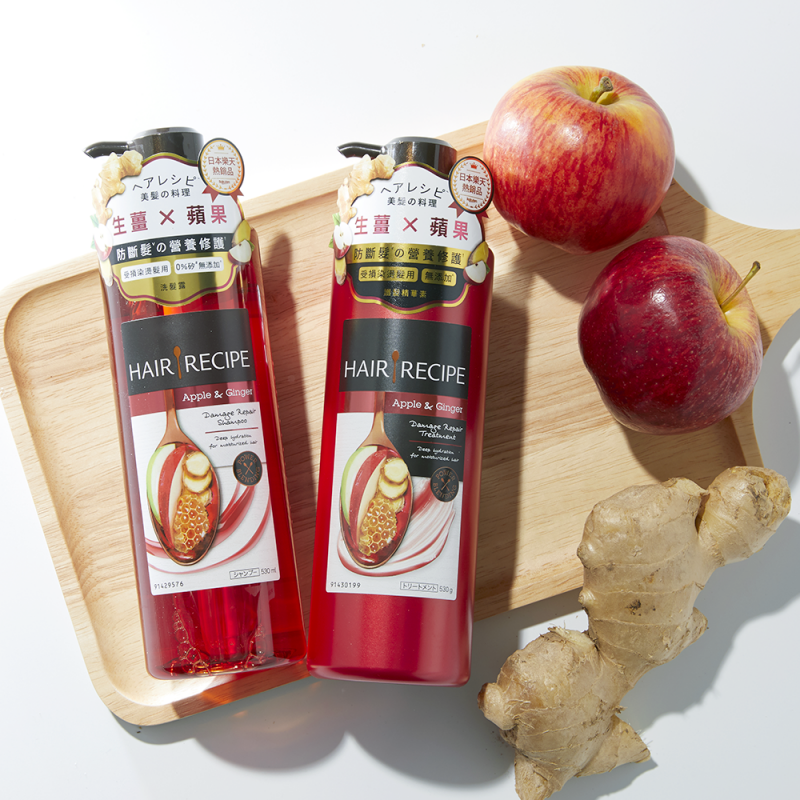苹果含Vitamin A&C及生物素,每天用Hair Recipe生姜 x 苹果防断修护洗发露及护发素,可深入修护滋润,令头发健康顺滑,令自尊心强慨“蘋”实の女更有自信,幸福度上升!苹果仲有维生素及矿物质,系头发健康生长必需营养,从今日起要每日用啦~