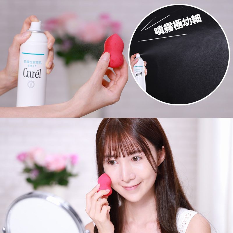 妆前保湿后,再用Curél深层高效保湿喷雾沾湿美妆蛋上妆,能加强粉底的水润效果,把普通粉底液升级成为保湿型粉底,令底妆更水润贴服呢,干燥敏感必试!