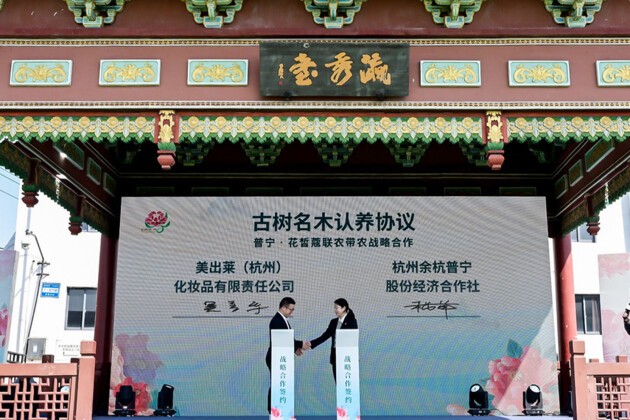 春雨过后,又逢牡丹盛放时节。3月26日,杭州市余杭区普宁村第十九届牡丹花会启幕,广邀八方游客,共赴一场春日之约。在开幕仪式上,纯净美妆头部品牌——MCL花皙蔻与普宁村展开战略合作,认养600年古牡丹花王,成为本届花会的一项盛举。花皙蔻将以“东方纯净护肤品牌”的特色定位与牡丹全产业链优势,围绕普宁古牡丹文化、牡丹产业创新、牡丹艺术美学及乡村女性就业而持续赋能。