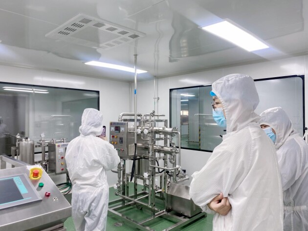 德诺海思是绽妍生物的两大基因工程研发平台之一,同时也是绽妍生物的研发中试生产基地。王植在绽妍生物研发团队的陪同下参观了配方实验室、理化试验室、原料实验室、产品展厅、功效检测室和万级洁净间。多个实验室的协同,帮助绽妍生物建立了从上游原料到终端产品的一体化研发平台。从产品开发逻辑到原料研发历程、原料功效检测和标准化生产线,全链路的一体化的高科技研发平台展现出绽妍生物雄厚的研发及生产能力。