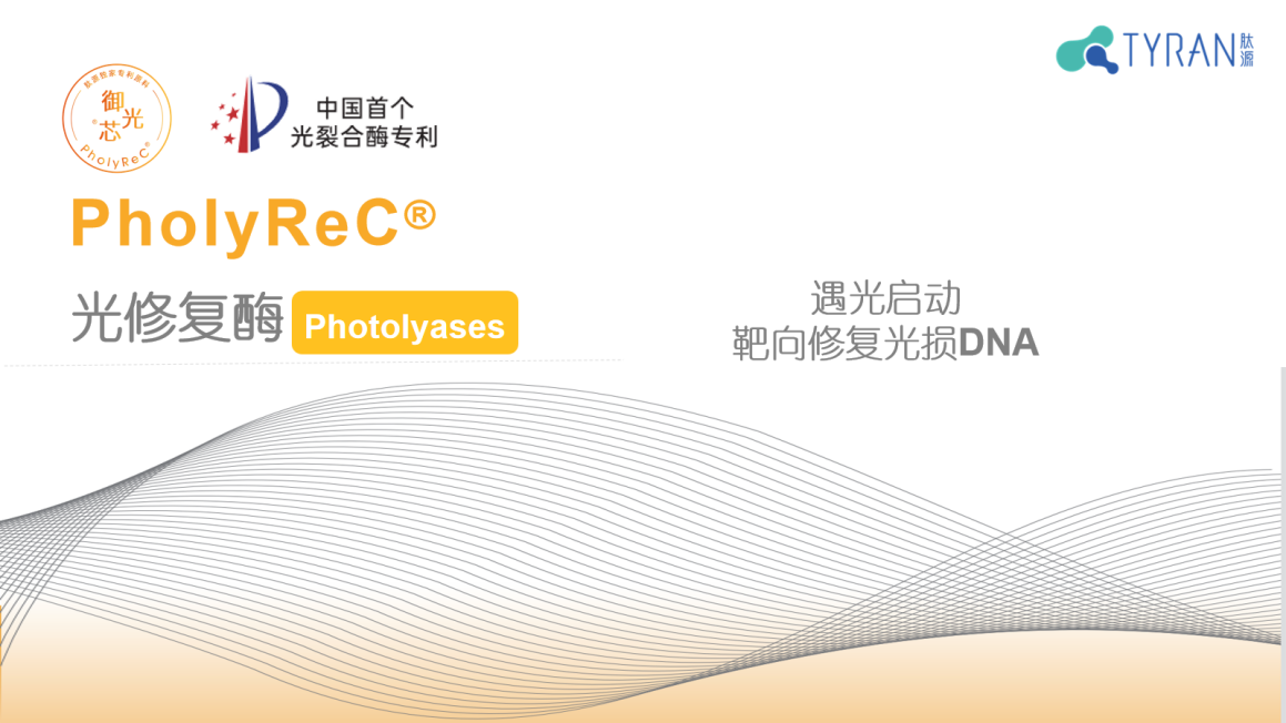 2022年11月22日,肽源集团首席科学家黄亚东教授带领团队研究并发现,源自嗜热栖热菌T. Thermophilus的光裂合酶(又称光修复酶)在紫外线引起的细胞DNA损伤修复方面具有极强的专一性和更高的修复效率。科研团队首先对光裂合酶进行序列测定和构效关系分析,借助AI开展分子设计,构建基因工程细胞株和中试工艺优化,成功实现了重组光裂合酶的绿色生物制造,并推出国内首个PholyReC®光修复酶原料。该研究成果荣获三项国家发明专利,是国内首个完成了新原料备案的对抗光老化的功效性原料。