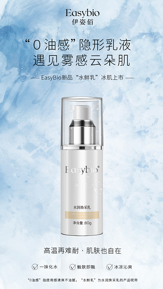 2020初夏伊始,国货美肤品牌Easybio伊姿佰就频出重拳,针对夏季保湿护肤的全新产品——Easybio伊姿佰水润焕采乳,在继5月风靡万千女性的水氧保湿纯液之后,闪耀上市,为你的夏日肌肤清爽保湿,提供独家护肤体验!