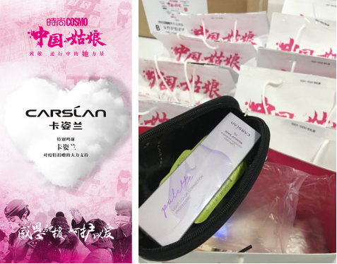 卡姿兰携手时尚COSMO,第一时间捐助彩妆产品,定向捐赠至抗疫最前线的武汉和孝感5家医院,用以帮助战斗在一线的女性医务工作者,在疫情平稳后恢复往日多彩生活。
