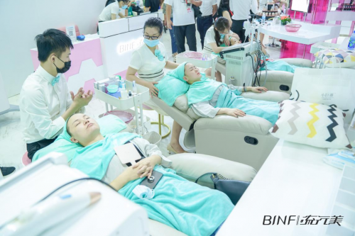 此次美博会展会期间,流行美烟酰胺美白新品系列、东方韵及新·声发饰新品系列震撼亮相;同时,现场还配备了自用一体的彩妆发饰梳妆及高端的肌肤护理仪,旨在让进馆观众切身体验“产品+服务”的极致享受。
