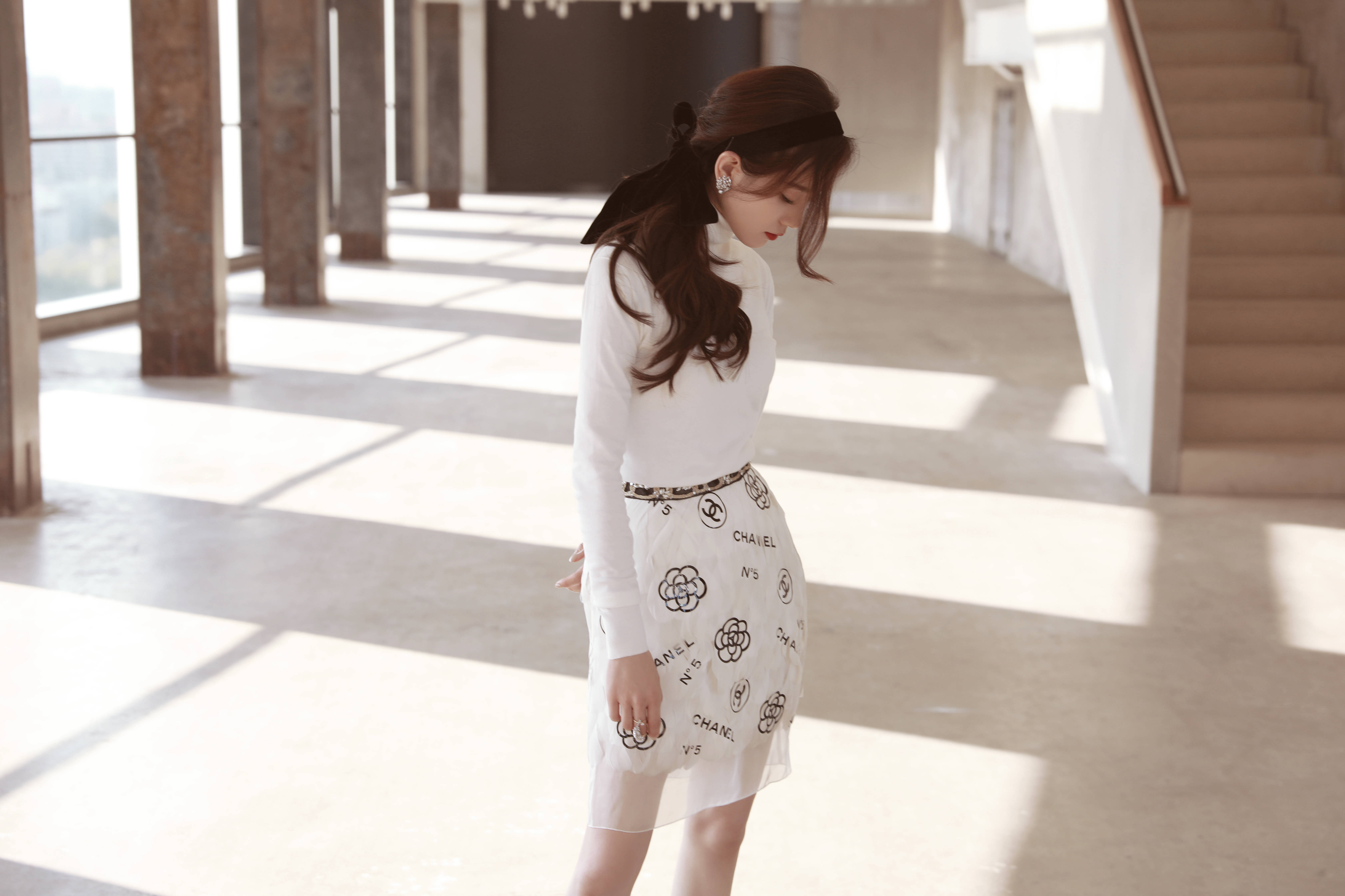 而刘诗诗造型则与杨幂相反,全身白色展现仙气,运用高领针织衫加上羽毛纱裙优雅现身,宛如“白天鹅”一般,更显四肢修长纤瘦,且比例拿捏得宜,裙上遍布的印花设计增添高贵气息,再绑起优雅马尾,不负香奈儿形象大使封号。