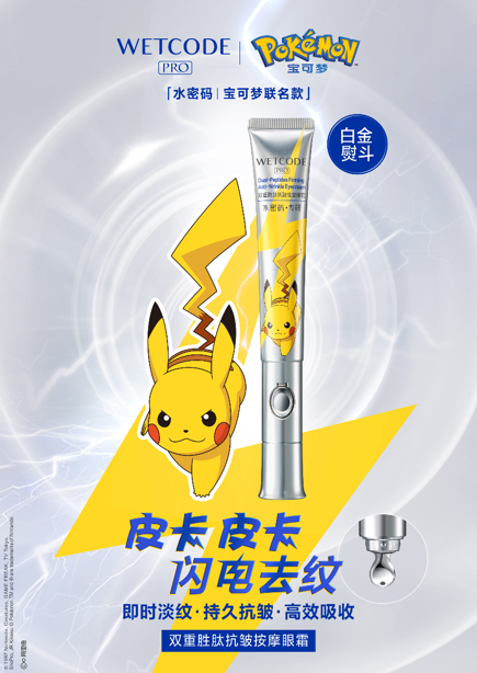 同时,水密码品牌负责人表示,宝可梦是全球人气最高、商业价值最大的ACG(动画、漫画、游戏)IP之一,其中的“灵魂人物”皮卡丘以神奇技能和超萌形象,深深圈粉全球各地的年轻人。基于此,水密码精准洞悉Z世代喜好,融合宝可梦IP属性及内核,抓取与品牌用户高重合度的“皮卡丘粉”,深度定制宝可梦联名款“白金熨斗眼霜”等系列限定产品,将水密码的“黑科技”内核与皮卡丘的“萌趣”元素巧妙结合,以此实现与Z世代的零距离对话,为顾客创造更大的价值,共同开启一场奇趣护肤新旅程。