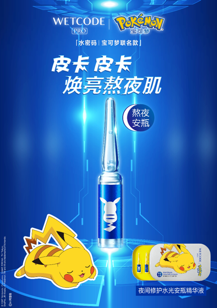 熬夜嗨皮,肌肤断电NG,干粗暗油?水密码宝可梦联名款熬夜安瓶,熬夜急救必备,高倍浓缩精华,密集修护,一夜焕亮熬夜肌,为肌肤快速补充能量,元气续航!“皮卡皮卡,焕亮熬夜肌”,快快为肌肤“充电”吧!