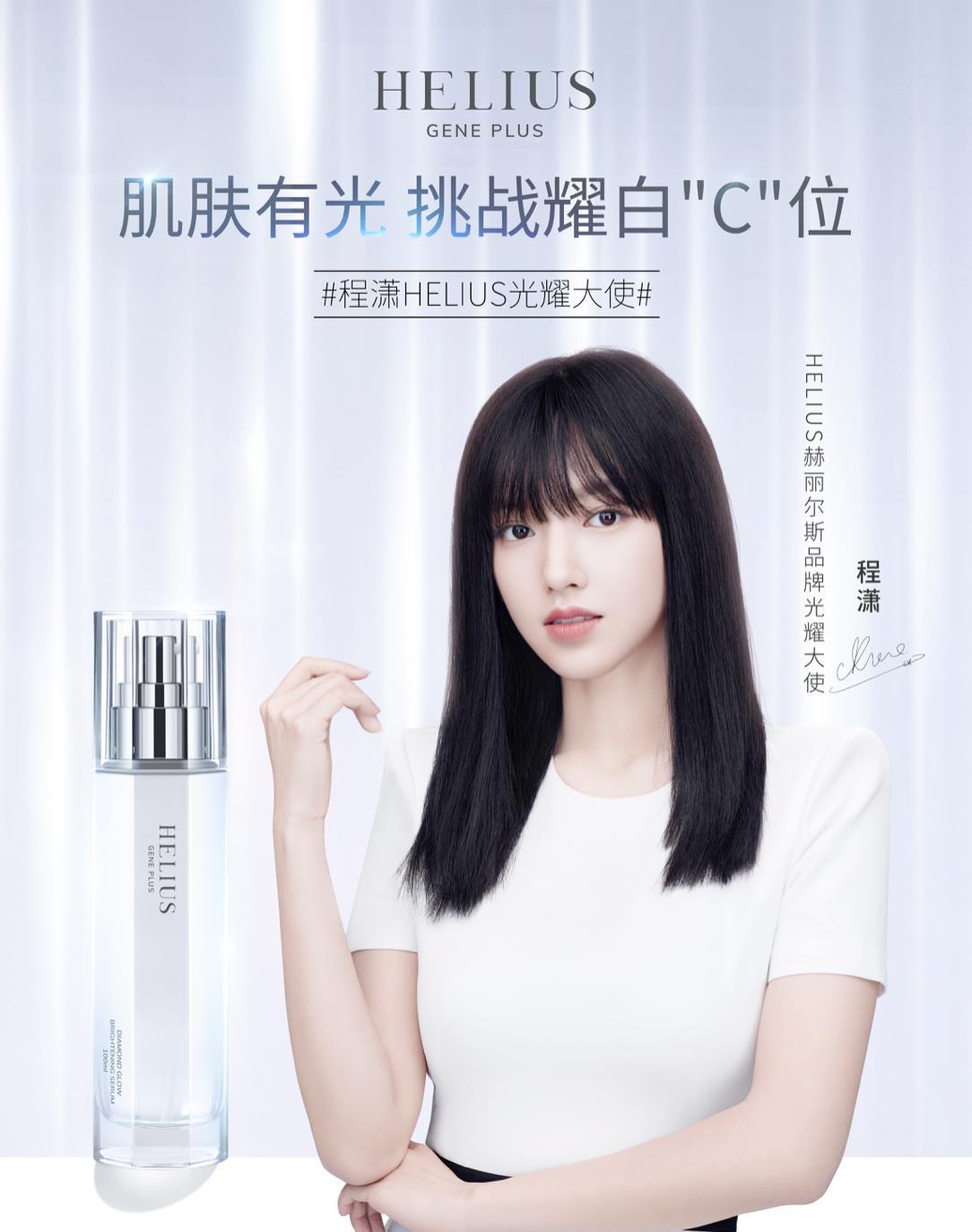2020 年 5 月 24 日,致力于展现女性由内而外的自信与从容的新锐护肤品牌 HELIUS 赫丽尔斯正式宣布 95 后全能偶像艺人程潇成为HELIUS 赫丽尔斯品牌光耀大使,携手独家微生态全路径美白产品——全新钻光皙颜微精华粹露,解锁全息美白的闪耀肌秘。